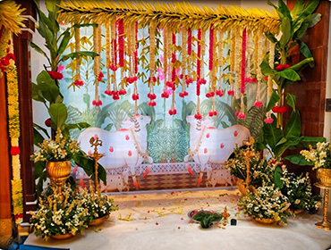 Beautiful floral designs combined with sacred elements to elevate the festive vibe.